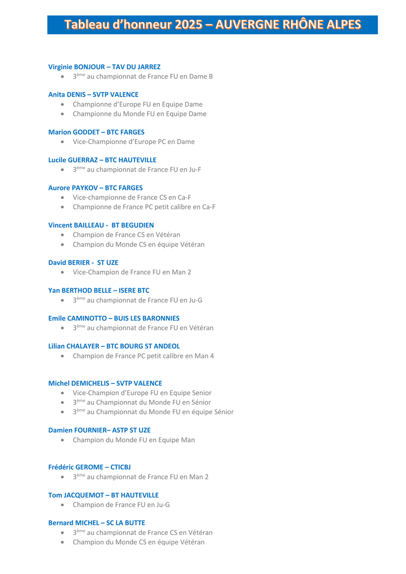Le comité régional tenait à mettre en avant les tireurs de la région Auvergne Rhône-Alpes
