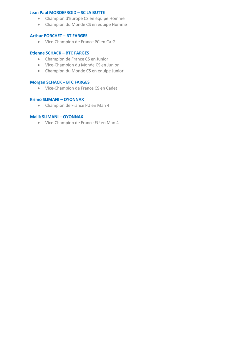 ayant eu de très bons résultats lors des compétitions nationales et internationales.